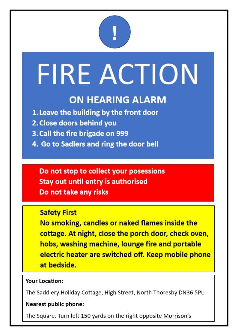 For full details, please click the link to view the Safety Instruction Sheet, or refer to the cottage information folder provided.